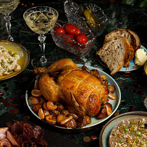 Гастрономическое кафе на Фонтанке составило отдельное новогоднее меню, позиции из которого можно будет заказать с 25 декабря до конца праздников. Туда включили паштеты, сыры, подготовленную к запеканию утку в азиатском маринаде и другие позиции.