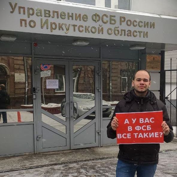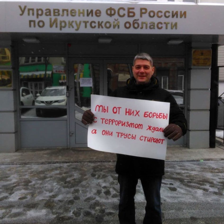 Координатор иркутского штаба Навального Сергей Беспалов и сотрудник Захар Сарапулов по очереди выходили к зданию ФСБ с плакатами "В у вас в ФСБ все такие?" и "Мы от них борьбы с терроризмом ждали, а они трусы стирают". "Мы требуем признать ФСБ террористической организацией и запретить её деятельность на территории России", - прокомментировал акцию Захар Сарапулов.