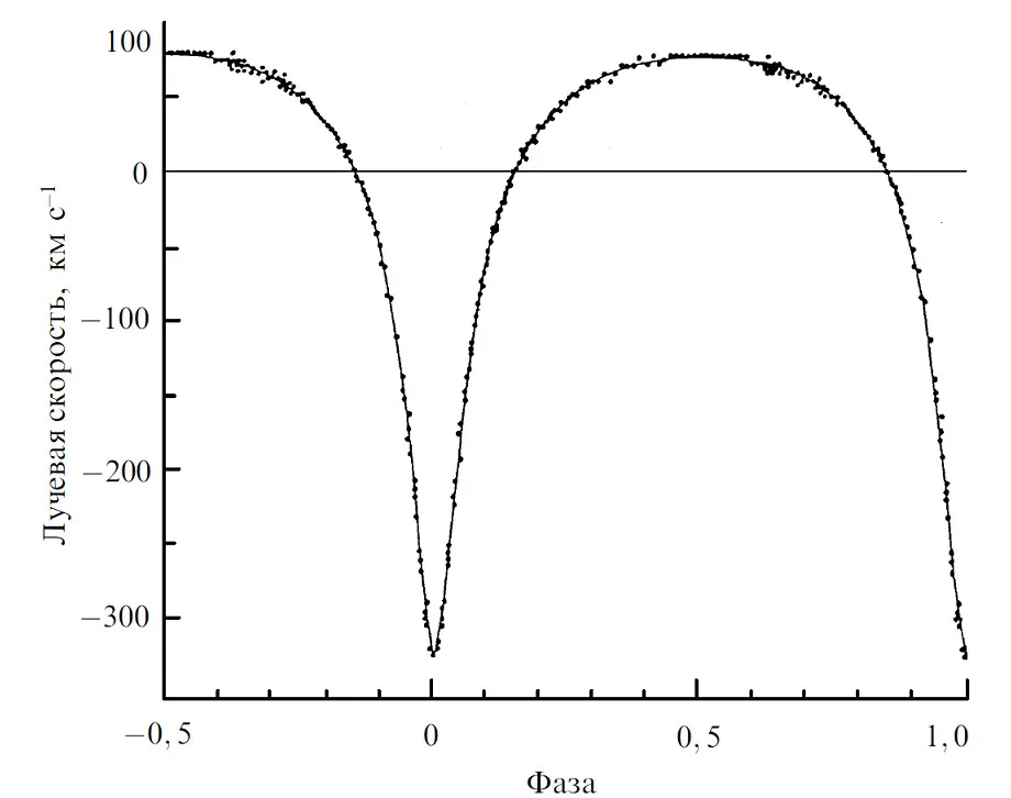 Рис. 1. Лучевая скорость пульсара в зависимости от орбитальной фазы
