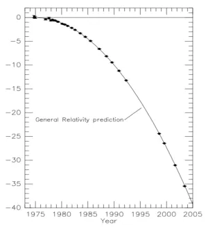 Народ сразу же оценил открытие двойного пульсара с той точки зрения, что найден прекрасный инструмент для проверки общей теории относительности, причем Джозеф Тейлор был главным энтузиастом этой идеи. Вклад релятивистских эффектов, пропорциональный квадрату орбитальной скорости и гравитационному потенциалу, оказался на полтора-два порядка выше, чем для Меркурия.