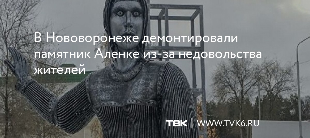 «Было принято решение о демонтаже. Сегодня ее срежут. Это не памятник, это арт-объект. Это у нас была создана рабочая группа, посвященная проведению мероприятий к 250-летию села Новая Аленовка. Установка арт-объекта – одно из многочисленных мероприятий. После демонтажа пока он у нас будет на складе в благоустройстве, дальше будем думать куда и что», – заявила заместительница главы администрации Нововоронежа Светлана Тулинова.Жители города обратились к местным властям с требованием снести памятник сразу после открытия 18 декабря. За три дня о необычном арт-объекте рассказали многие СМИ, его также активно обсуждали в соцсетях.