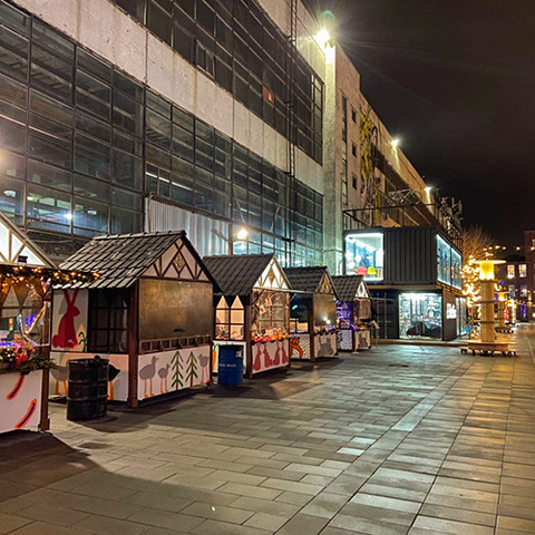 В пространстве «Севкабель Порт» работает новогодняя уличная аллея с домиками, где можно купить горячую еду, елочные игрушки, посуду и подарки. Резидентами маркета стали Pop ceramics, инклюзивные мастерские «Простые вещи», производитель эфирных масел Freedom aroma и другие проекты. Оформлением домиков занимались петербургские уличные художники (например, Денис Турбен), а неподалеку от маркета работает «Каток у моря». Обратить внимание стоит и на инсталляцию Arrival от арт-дуэта 404.Zero. Для нее трансформировали Кабельный цех: работа представляет собой лазерный луч, который проходит через металлические рамы.