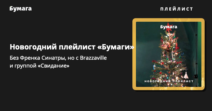 «Бумага» собрала медленную музыку для паузы в потоке предпраздничных дел, ленивых встреч с друзьями 1 января и прогулок на каникулах. В нашем новогоднем плейлисте 16 песен, но нет привычных — Фрэнка Синатру и ABBA вы всё равно где-нибудь услышите.
