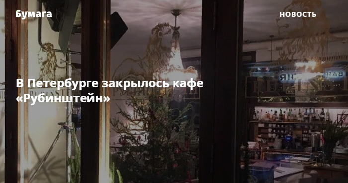 Последний день «Рубинштейн» работал 22 декабря. Причину закрытия в кафе не уточняют. Неизвестно и то, вернется ли проект к работе в каком-либо виде. «Бумага» направила запрос представителям заведения, но к моменту публикации новости не получила ответ.