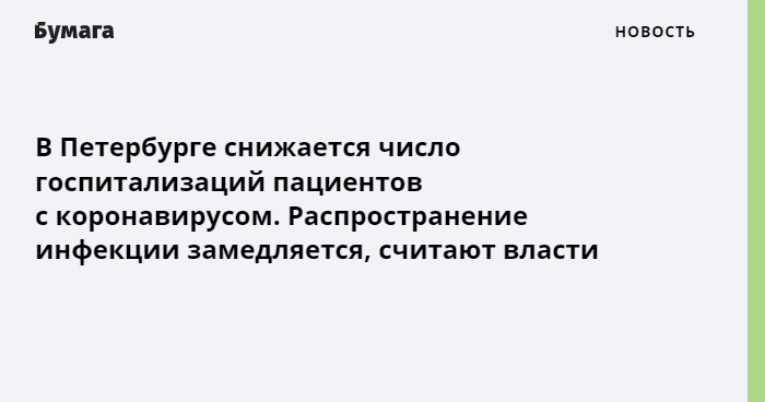 В Петербурге снижается число госпитализаций пациентов с коронавирусом. Это говорит о замедлении распространения инфекции, считают в межведомственном городском координационном совете.