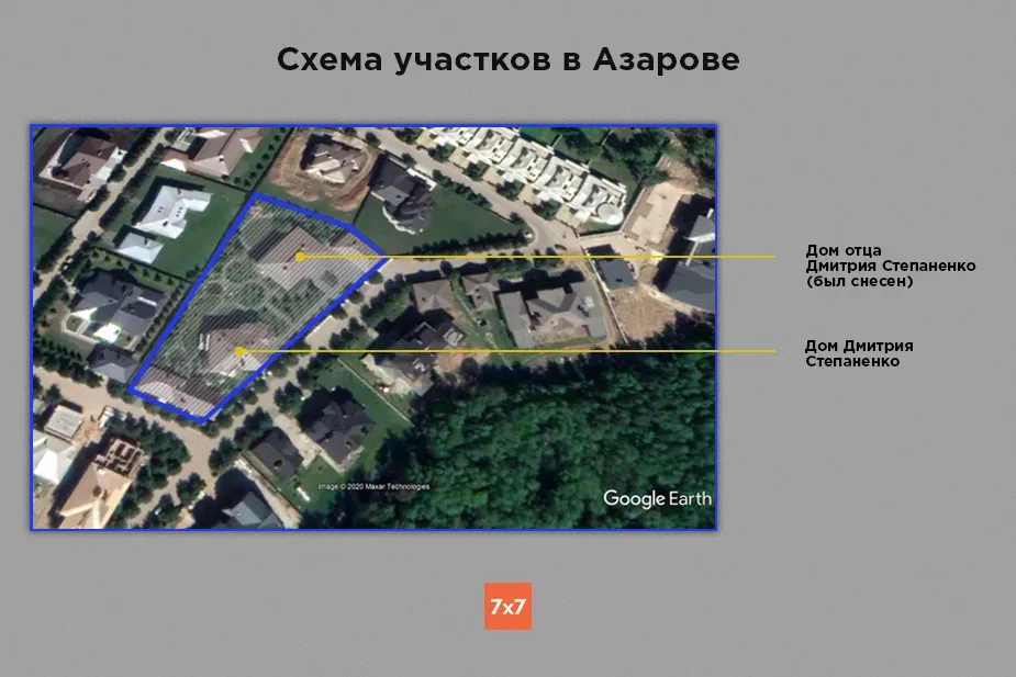 Осенью 2020 года, в момент подготовки материалов для публикации, авторы обнаружили, что дом на участке Степаненко-старшего снесли. Только его кадастровая стоимость была 13 млн руб. (как правило, реальная цена намного выше), но на кадрах с дрона вместо дома виден котлован. Ландшафтный дизайн вокруг него и гараж в углу участка остались нетронутыми, строительный мусор с участка уже вывезен.