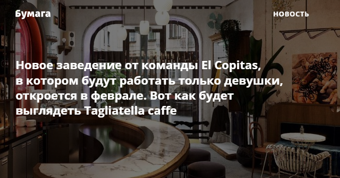 Новое заведение от команды El Copitas — Tagliatella caffe — откроют в феврале