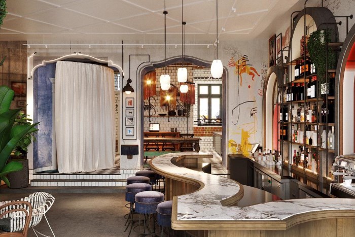 В баре будет один зал на 60 посадочных мест, оформлением помещения занимается дизайнерское агентство Paum design («Банщики», «Литера G»). Основным акцентом станут барная стойка и стол с закусками (их будут выставлять с 16:00 до 19:00).