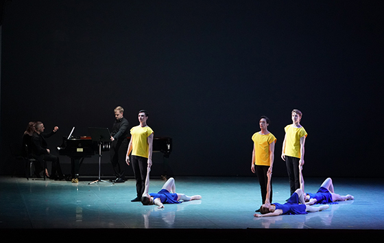 Хореограф изобретательно тасует три пары исполнителей на протяжении 12 номеров («Озорные песни» дополнены фортепианными миниатюрами Пуленка), и единственное, что здесь выглядит спорным, — это три медленных номера, следующих друг за другом подряд в середине формы: ритм балета проседает. Теперь исполнителям и репетиторам предстоит навести на эту хореографию резкость: научиться динамично ходить и бегать, привести в порядок работу рук и верх корпуса (задранные плечи у мужчин подчеркнуты неудачным кроем футболок: костюмы придумывал сам хореограф), дать нужные акценты. Уже на втором спектакле ритмы обрели остроту, появился должный охват пространства, и пластическая машина балета вышла на проектную мощность — танцевали Екатерина Пятышева, Анна Терентьева, Илья Будрин и Артем Мишаков, а также Полина Булдакова и Кирилл Макурин, выступавшие и в первом составе.