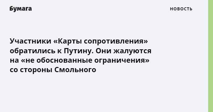 Участники «Карты сопротивления» опубликовали открытое письмо к Владимиру Путину. Об этом «Бумаге» рассказал создатель проекта Александр Коновалов, текст письма можно прочитать на Change.org.