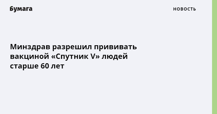 Глава Минздрава Михаил Мурашко сообщил, что вакцину «Спутник V» можно применять людям старше 60 лет. Об этом пишет «Интерфакс».