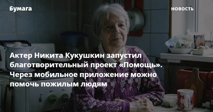 Актер «Гоголь-центра» Никита Кукушкин запустил благотворительный проект «Помощь». Это мобильное приложение, с помощью которого можно помочь пожилым людям в решении конкретных проблем.