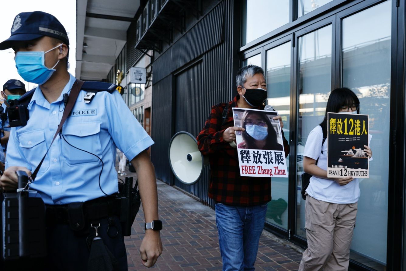 Несколько дипломатов и иностранных журналистов пытались попасть на судебное заседание, где рассматривали дело Чжан Чжань, но их отказались пустить в здание.