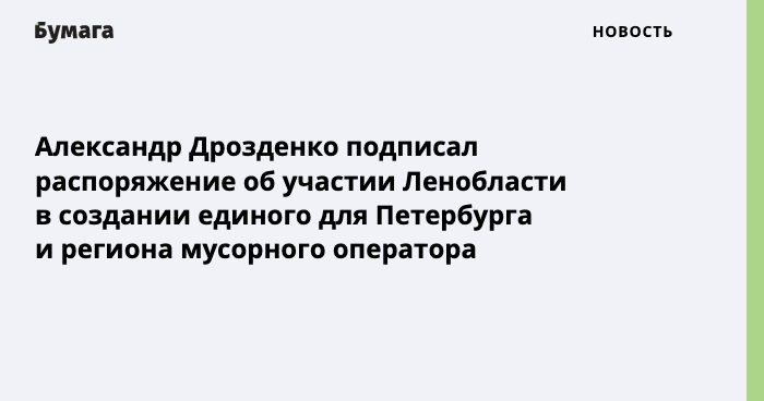 Александр Дрозденко подписал распоряжение об участии Ленобласти в создании единого для Петербурга и региона мусорного оператора