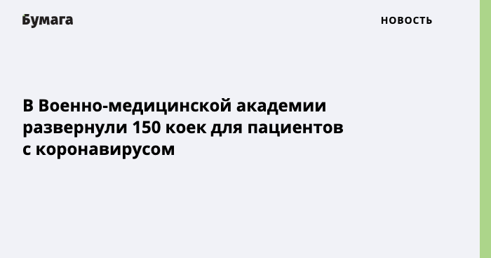 В Военно-медицинской академии развернули 150 коек для пациентов с коронавирусом