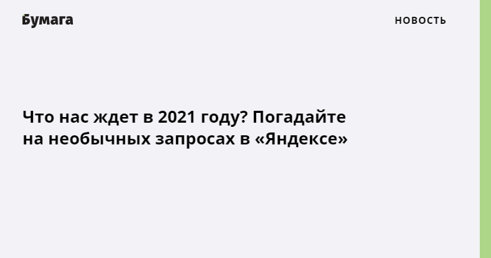 «Яндекс» запустил генератор предсказаний на 2021 год. Предсказания сформированы на основе пользовательских запросов.