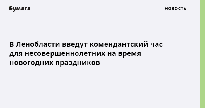 В Ленобласти введут комендантский час
