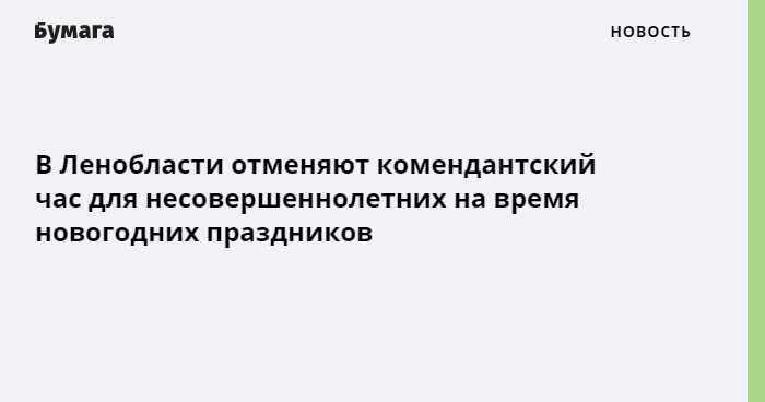 В Ленобласти отменяют комендантский час в Новый год