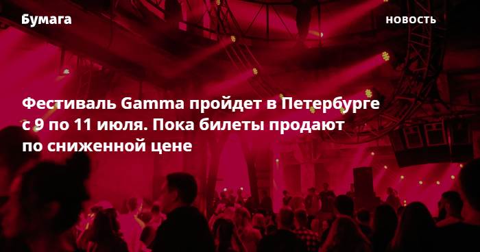 Фестиваль Gamma пройдет в Петербурге с 9 по 11 июля