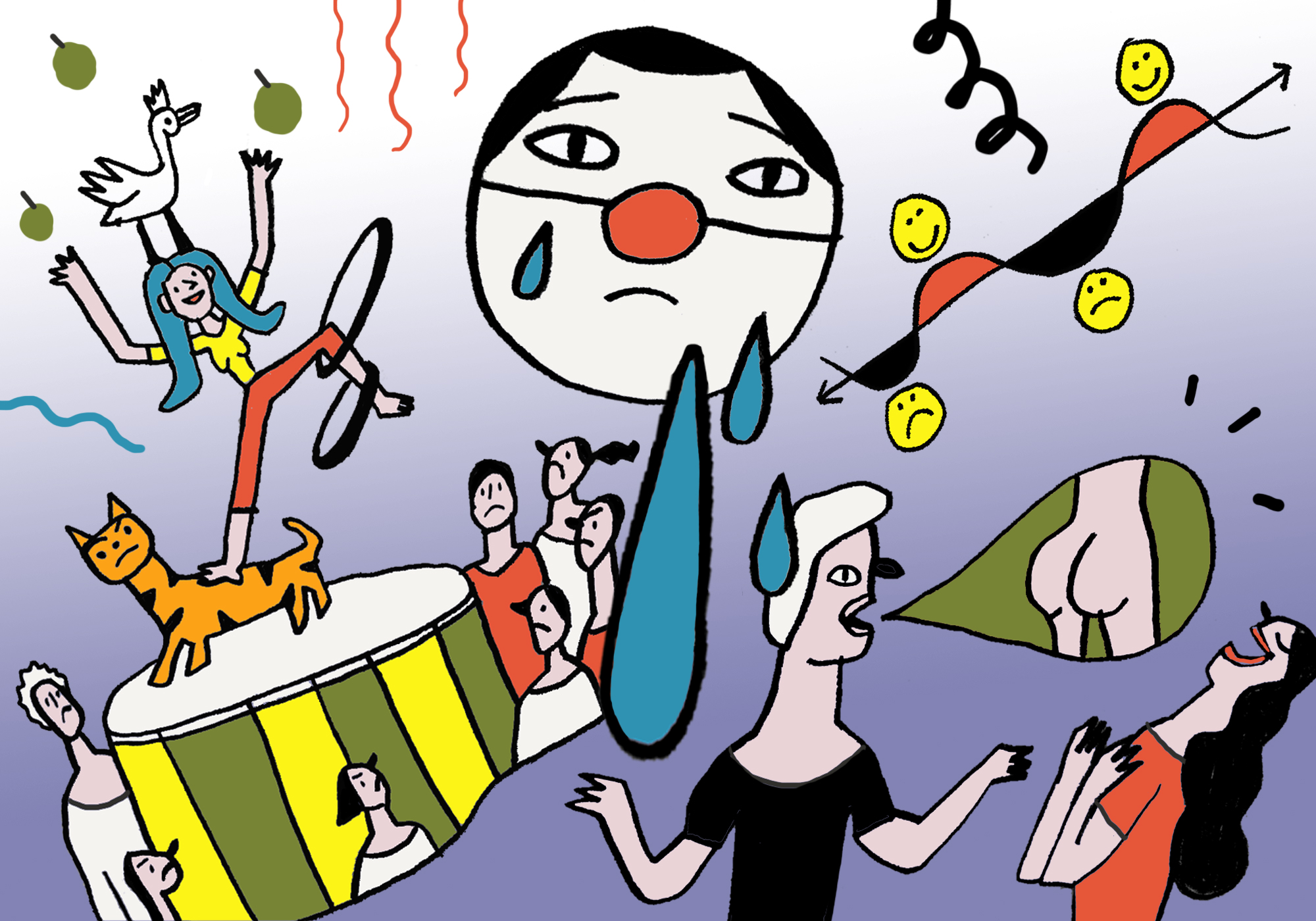 Иллюстрация: Нина Стадник для ТД Иногда ловишь кайф от неудачи. Недавно я выступал со своим другом — резидентом «Стендапа на ТНТ». Я принес шуток про смерть, про то, как расти без отца, какие-то совсем социальные штуки. Публике было местами печально, они не к тому привыкли, глядя тээнтэшное шоу. В какой-то момент меня стало радовать, что их это не веселит, потому что я как будто их наказывал. Это был вечер, посвященный мне, моему извращенному представлению о юморе, а они все как будто просто на нем присутствовали. Есть какой-то в этом веселый мазохизм.