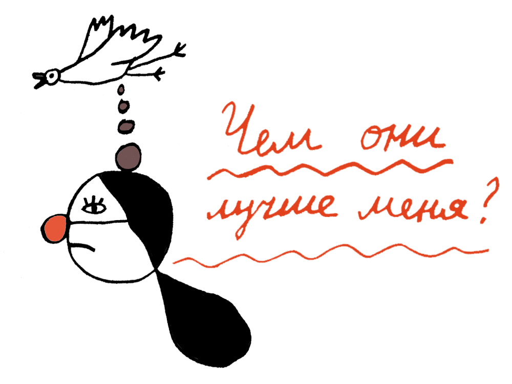 Я не думала, что могу быть такой завистливой. Когда все идет не так, я сразу начинаю сравнивать себя с другими, и мне кажется, что у всех вокруг все получается, все смешные и талантливые, всем больше везет. А я чем-то заслужила эту череду говна. Параллельно с этим я думаю: «Чем они лучше меня?»