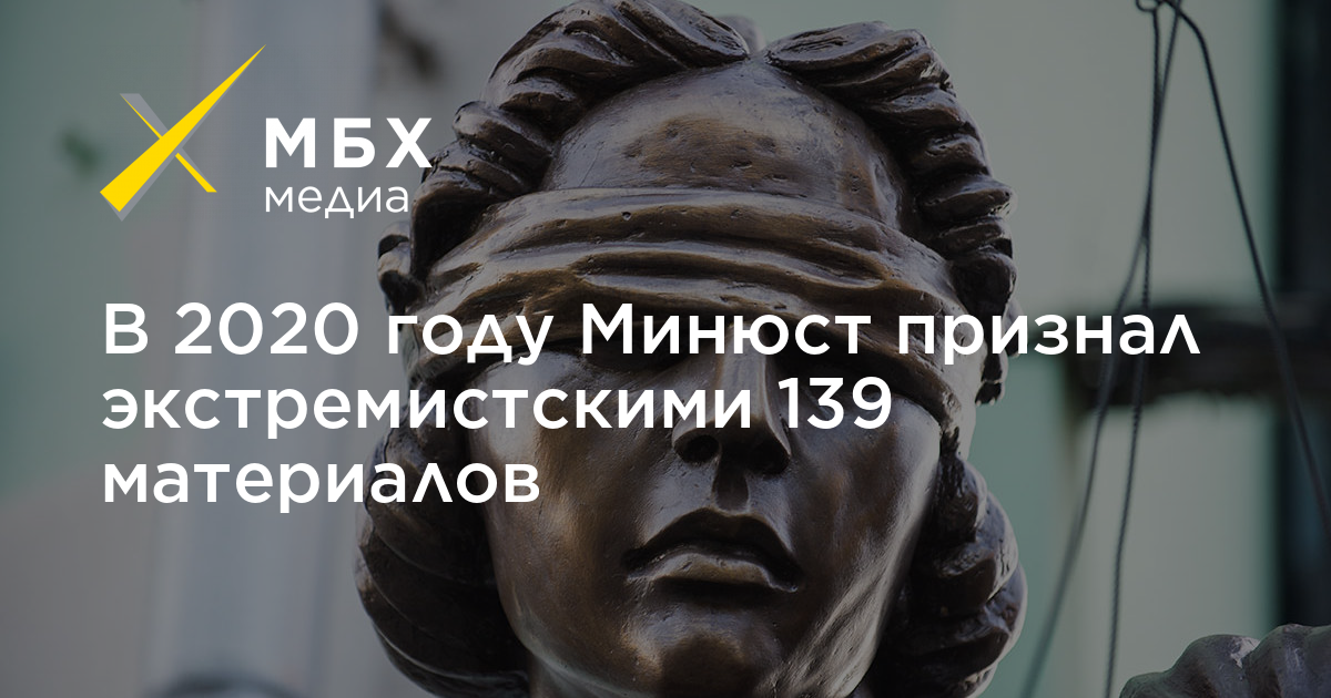 В 2020 году Минюст пополнил реестр экстремистских материалов на 139 позиций, подсчитало «МБХ медиа» на основе данных министерства.