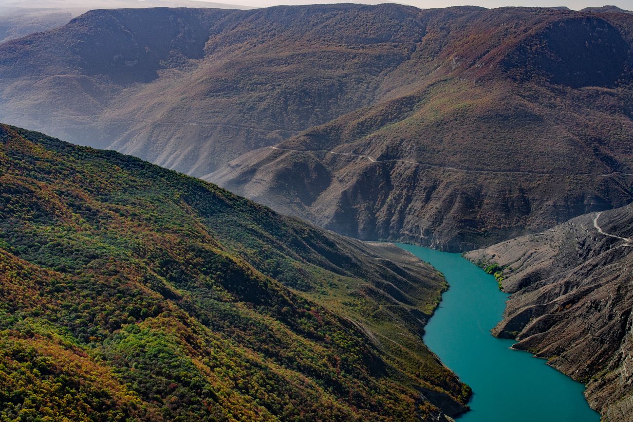 В полутора часах езды от Махачкалы змеится Сулакский каньон глубиной 1920 метров — это глубочайший каньон России и Европы, если проводить границу между частями света по Главному Кавказскому хребту. По текущей по дну каньона реке Сулак можно прокатиться на катере, можно полюбоваться на бирюзовую воду со смотровых площадок в поселке Дубки и возле Чиркейской ГЭС (у которой, кстати, самая высокая в России арочная плотина).