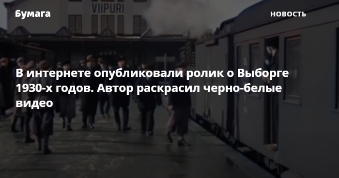 В новом видео зрители могут увидеть улицы Выборга, площадь у Круглой башни, городской вокзал и другие места. В 1930-е Выборг был частью Финляндии — город являлся вторым по величине населенным пунктом страны.