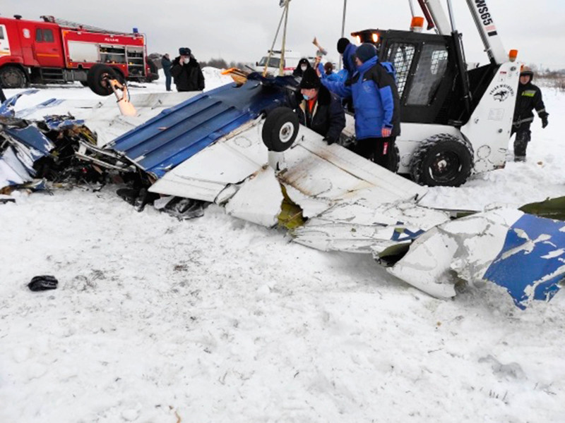 Как сообщил источник с места происшествия, "авария произошла на взлете во время выполнения кругового маневра". Среди основных версий произошедшего - ошибка пилота при выполнении маневра - полета по кругу. Кроме того, среди версий - возможное обледенение элементов фюзеляжа или управления и отказ техники.