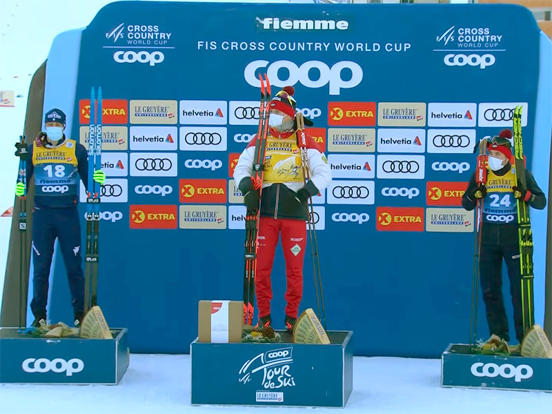 На финише 15-километровой дистанции Александр на 1,8 секунды опередил хозяина трассы Франческо де Фабиани. Бронза у товарища Большунова по сборной России Алексея Червоткина (+3,7 сек). Результат победителя - 41 минута 33,7 секунды.