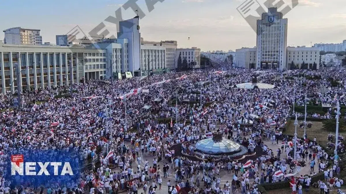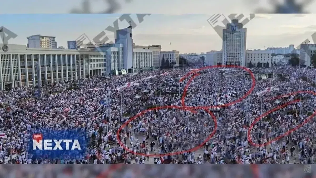 Фотография с площади в Минске точно подделана. И на ней есть видимый логотип оппозиционного канала NEXTA. Но есть одна проблема — фейковую фотографию выпустил в эфир не telegram-канал NEXTA, а программа Михалкова. Но и оригинал отражает размах протестов.