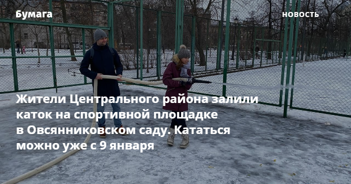 Жители Центрального района залили каток на спортивной площадке в Овсянниковском саду