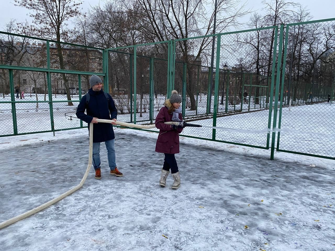 Также петербуржцы приглашают всех желающих помочь с расчисткой катка от снега.