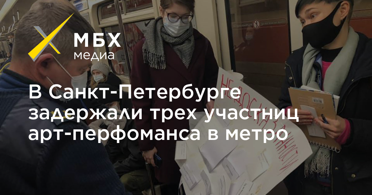 Сотрудники полиции задержали Катрин Ненашеву, Арину Канерву и Екатерину Ильину, устроивших арт-перфоманс в метро Санкт-Петербурга, сообщает «ОВД-Инфо» со ссылкой на задержанных.