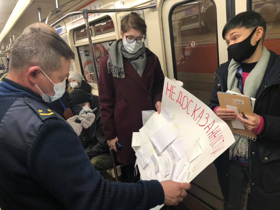 Ненашева вместе с другими девушками внутри вагона метро развернули ватман и предложили пассажирам написать близким то, что не получается сказать лично. Проект называется "Почта недосказанности". Участниц задержали после звонка в полицию сотрудников метрополитена.