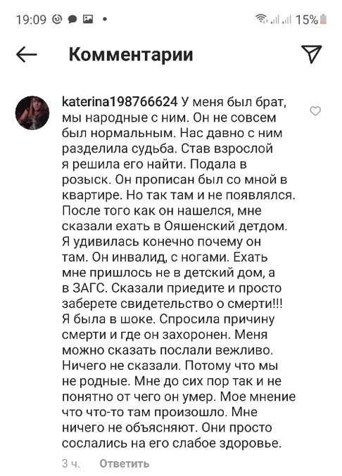 Анастасия, комментируя этот текст, говорит, что никаких документов об отсутствии претензий к интернату ее сестра не подписывала.