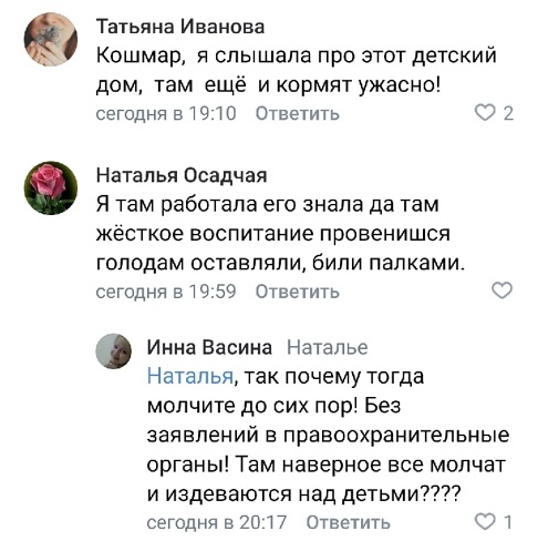 Он никогда ничего подобного не делал дома, даже когда другие его обижали, среди детей иногда бывают стычки, кто-то толкнет его, он – никогда в ответ. Этот мальчик никогда не был агрессивным. По откликам на мой пост в интернете я узнала, что в этом интернате страшно наказывают детей – провинившихся морят голодом и бьют палками!
