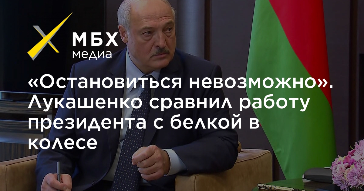 «Президент — это белка в колесе. Остановиться невозможно. Вот колесо вертится — ты бежишь, бежишь, бежишь. Наверное, пока, как в народе говорят, не скопытишься, не упадешь», — сказал Лукашенко (цитата по ТАСС).
