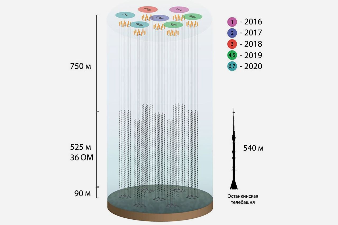 И именно с этим открытием связано возрождение байкальского нейтринного проекта и началом строительства нейтринного телескопа Baikal-GVD (Gigaton Volume Detector, детектор гигатонного объема). Это совершенно новый детектор нейтрино, пришедший на смену еще советскому детектору НТ-36, также расположенному в водах Байкала, но сильно устаревшему и потерявшему на фоне успехов IceCube свою актуальность.
