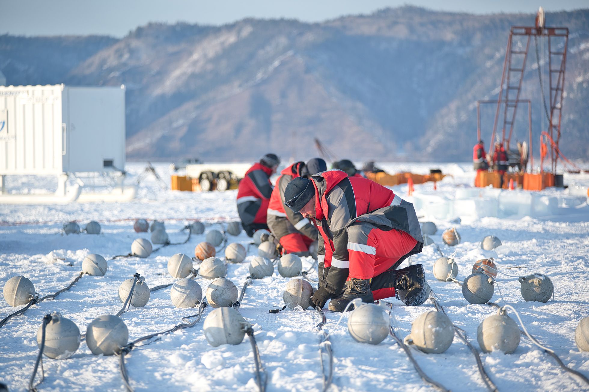 Мартовское солнце рассыпается искрами на хрустящем сибирском снегу и оттого слепит еще сильнее. По льду Байкала осторожно ползет трактор и тянет за собой огромную, в человеческий рост, фрезу. Она вгрызается зубьями в лед метровой толщины и режет его до самой воды. Вслед за ней идет специальная машина и осторожно опускает в открывшиеся байкальские воды толстый кабель, который должен аккуратно залечь на километровую глубину озера. До берега еще три километра пути, и преодолеть их нужно до заката.