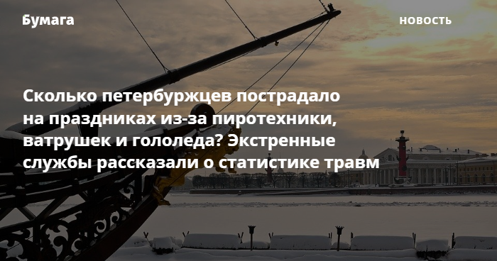 Представители экстренных служб Петербурга рассказали о статистике травм, полученных в новогодние праздники. Об этом сообщила «Фонтанка».