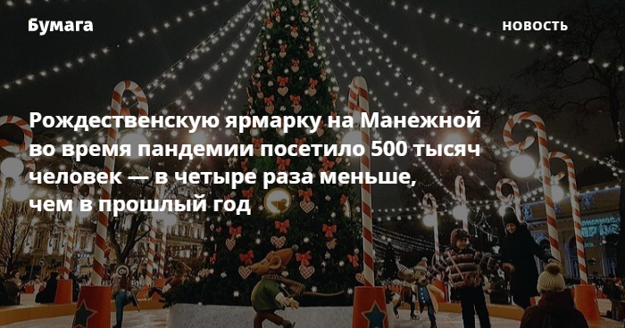 В 2020 году рождественскую ярмарку на Манежной площади посетило более 2,2 миллиона человек. При этом она длилась дольше на 11 дней.