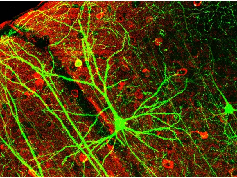 Дальше несколько примеров того, как это выглядит. Вот мечение целых организмов. Вы можете пойти практически в любой зоомагазин и купить рыбок, обычно они раскрашенные сильно. Это флуоресцентные белки тех рыбок, которые исходно были не раскрашенные. Можно сделать трансгенную мышку или даже поросенка, который будет вот такой зеленый или красный. Но более важно, конечно, метить клетки в реальных системах, это позволяет очень четко визуализировать какие-то субпопуляции клеток. Например, это сенсорные нейроны и интернейроны в дрозофиле, или вот на срезах мозга мыши можно увидеть специфические клетки, которые помечены на GFP через специфические промоторы.