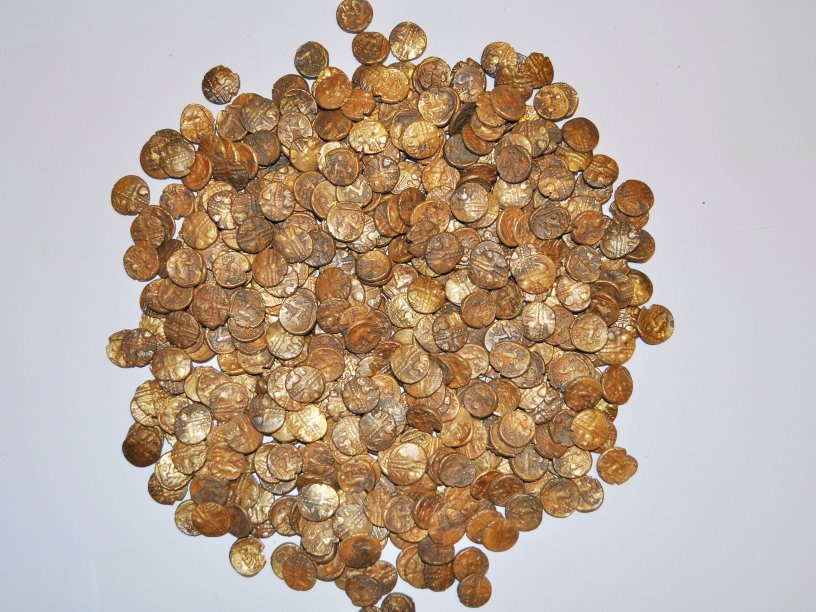 На востоке Англии мужчина при помощи бинокля наслаждался зрелищем того, как две сороки нападали на крупного канюка. Когда птицы скрылись из поля зрения, он посмотрел вниз и заметил что-то блестящее на недавно вспаханном поле. Подняв из борозды грязный кружок, он подумал было, что это старая металлическая шайба, но в его руке оказалась золотая монета. В нескольких десятках сантиметров он увидел еще одну.