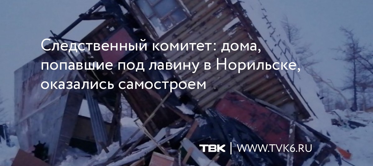Следственный комитет: дома, попавшие под лавину в Норильске, оказались самостроем