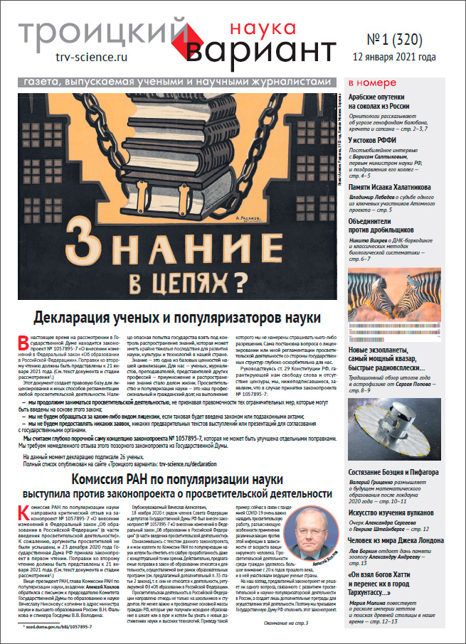 Весь номер газеты «Троицкий вариант — Наука» № 320 от 12 января 2021 года в PDF