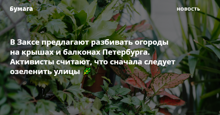 В фонде «Зеленый Петербург» рассказали «Бумаге», что одобряют идею, но «пока город не зелен внизу, это не первостепенно». Главная задача сейчас — озеленение улиц Петербурга, отметили в организации.