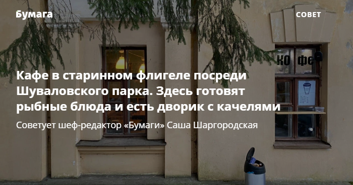 Шеф-редактор «Бумаги» советует кафе в Шуваловском парке