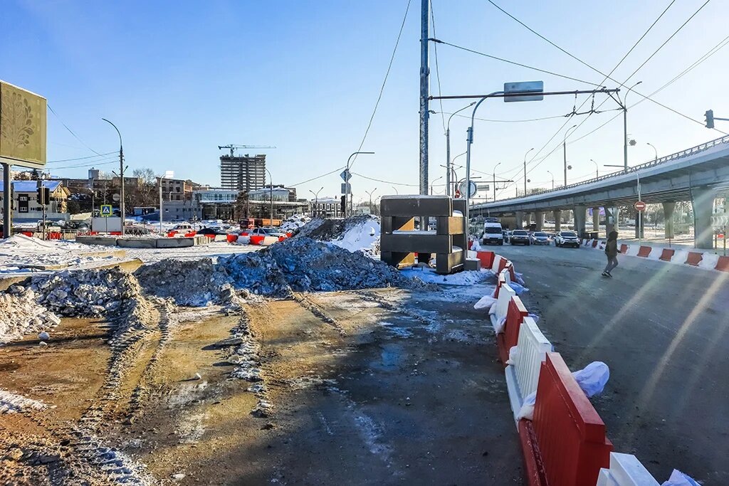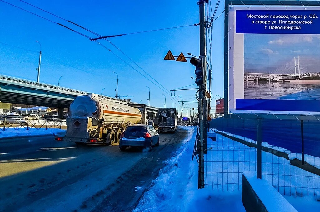 Пешеходные переходы на площади Будагова в Новосибирске убрали из-за строительства четвертого моста через Обь, который будет платным. Ходить там сейчас можно лишь по проезжей части.