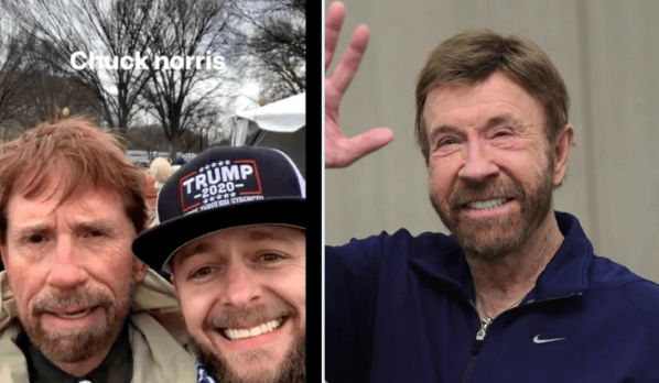 Во время поисков протестующих пользователи соцсетей наткнулись на фото у Капитолия, на котором человек в кепке «Trump 2020» фотографируется с мужчиной, похожим на актёра Чака Норриса. Учитывая, что звезда сериала «Крутой Уокер» в 2016 году призывал голосовать за Трампа, в твиттере решили, что 80-летний Норрис действительно принял участие в беспорядках у Капитолия. Посты об этом разошлись по сети, хоть в комментариях и отмечали, что актёр в 2021 году выглядит старше, а ещё у него другой цвет глаз.